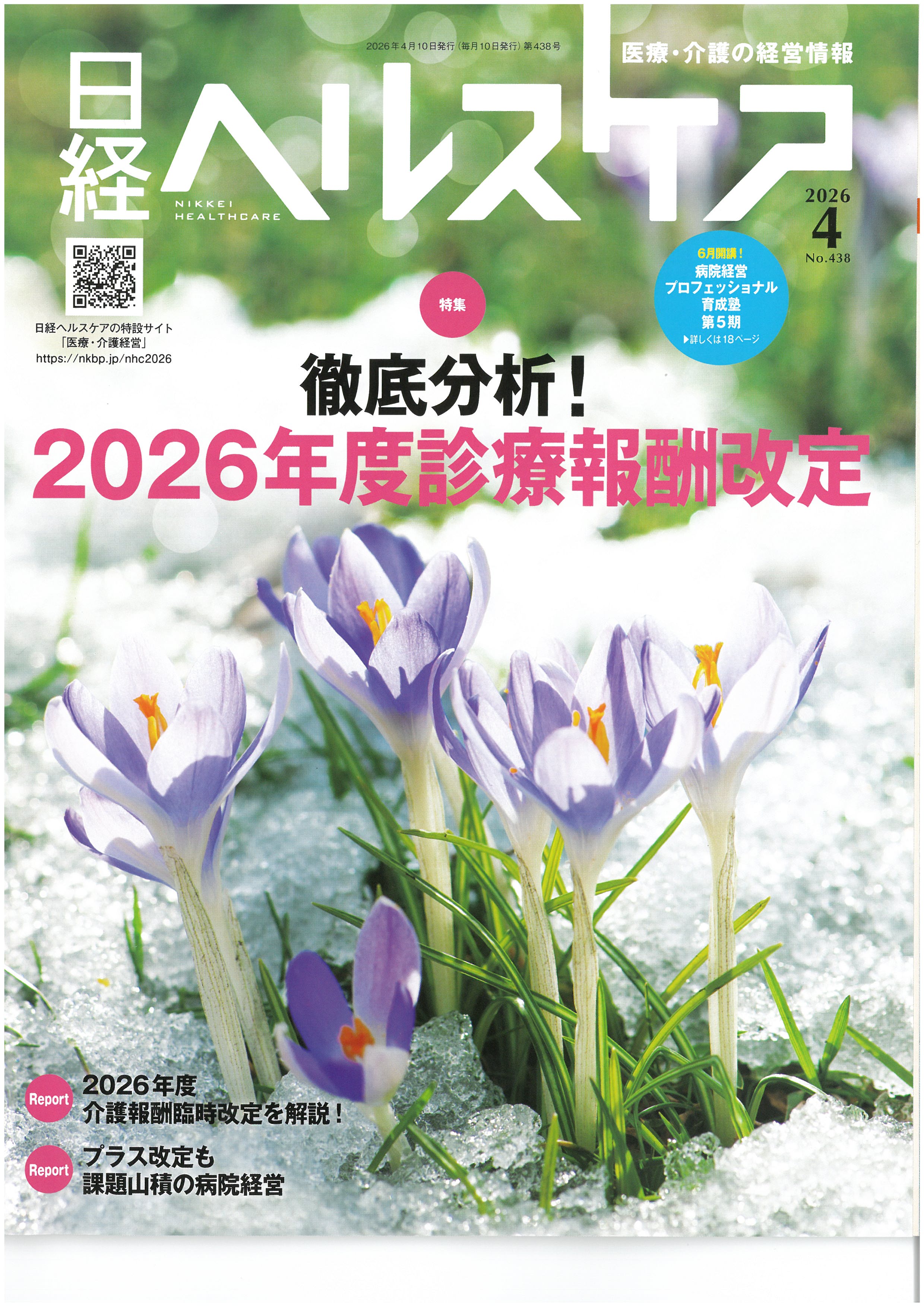 日経ヘルスケア4月号の2026年度診療報酬改定に関する特集記事で「在宅医療」に関する内容について、島田会長の記事が掲載されました。